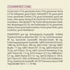 Zusatzstoffe:Technologische Zusatzstoffe: 1b306(i) Tocopherol-Extrakt aus pflanzlichen Ölen: 121 mg, 1a330 Zitronensäure: 40 mg. Sensorische Zusatzstoffe: Rosmarin-Extrakt: 80 mg. Ernährungsphysiologische Zusatzstoffe: 3a890 Cholinchlorid (Cholin): 1400 mg, 3a370 Taurin: 400 mg, 3b612 (Zink: 160 mg), 3b407 (Kupfer: 11 mg), 3a821 Vitamin B1: 25 mg, 3a825i Vitamin B2: 10 mg, 3a314 Niacin: 50 mg, 3a841 Calcium-D-Pantothenat: 8 mg, 3a831 Vitamin B6: 7,5 mg, 3a316 Folsäure: 0,75 mg, 3a880 Biotin: 0,1 mg, 3a835 Vitamin B12: 0,1 mg, 3a672a Vitamin A: 750 IE, 3a671 Vitamin D3: 100 IE, 3a700 Vitamin E: 250 IE, 3c301 DL-Methionin: 99 mg. Zootechnische Zusatzstoffe: 4b1707 Enterococcus faecium DSM 10^663/NCIMB 10^415: 1 x 10^9 KBE