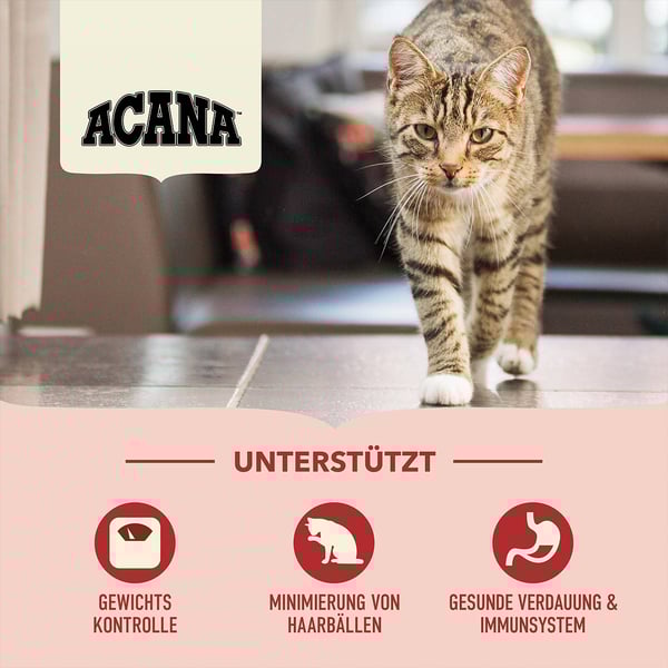 Dank der reichhaltigen Zusammensetzung aus tierischen Proteinen und Ballaststoffen hilft ACANA Cat Indoor Entrée, die Bildung von Haarballen zu reduzieren. Diese spezielle Rezeptur ist ideal für Katzen, die viel Zeit mit der Fellpflege verbringen und dadurch anfällig für Haarballen sind. So kannst du sicherstellen, dass deine Katze sich rundum wohlfühlt und das Risiko von Haarballen minimiert wird.