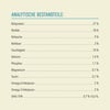 Roher ganzer Hering (16 %), rohe ganze Makrele (12 %), roher Seehecht (9 %), getrockneter Hering (8 %), getrockneter Blauer Wittling (8 %), getrocknete Makrele (8 %), ganze Wachtelbohnen, ganze Erbsen, rohe Flunder (5 %), Fischöl (5 %), ganze rote Linsen, ganze Kichererbsen, ganze grüne Linsen, roher Felsenbarsch (4 %), Sonnenblumenöl, Linsenfasern, getrockneter Seetang, frischer ganzer Kürbis, frischer ganzer Butternusskürbis, frische ganze Karotten, frische ganze Äpfel, frische ganze Birnen, frische ganze Zucchini, getrocknete Chicorée-Wurzel, frischer Grünkohl, frischer Spinat, frische Speiserübenblätter, Rote-Bete-Blätter, ganze Cranberries, ganze Heidelbeeren, ganze Saskatoon-Beeren, Kurkumawurzel, Mariendistel, Klettenwurzel, Lavendel, Eibischwurzel, Hagebutte