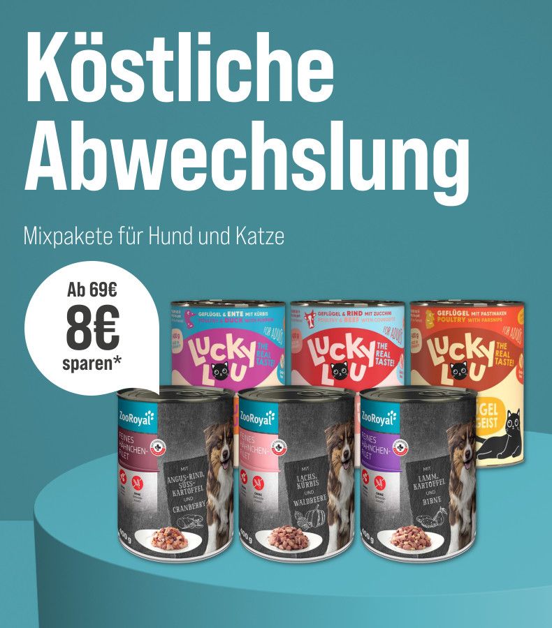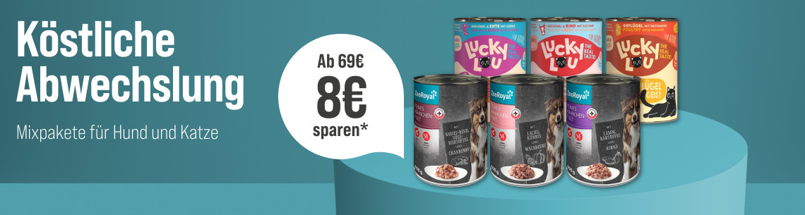 *Gültig vom 27.05.2024 bis 16.06.2024. Das Angebot gilt nur auf ausgewählte Produkte auf unserer Aktionsseite. Nur solange der Vorrat reicht. 8€ Rabatt ab einem Einkauswert von 69€ mit dem Code mix-8. Nur ein Gutscheidcode pro Bestellung einlösbar. Gilt nur im ZooRoyal Online-Shop und nicht in den ZooRoyal Fachmärkten.