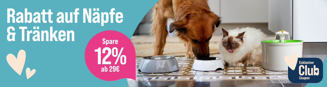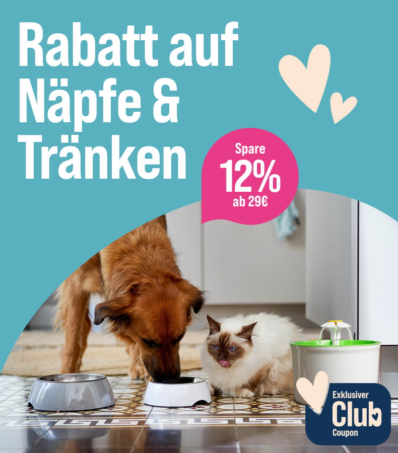 *Gültig vom 27.04.2026 bis 04.05.2026 nur für ZooRoyal Club Mitglieder. 12 %  Rabatt ab 29 € auf Näpfe und Tränke für Hunde und Katzen. Gilt nur auf ausgewählte Produkte dieser Aktionsseite. Gilt nur im ZooRoyal Online-Shop und nicht in den ZooRoyal Fachmärkten.