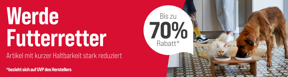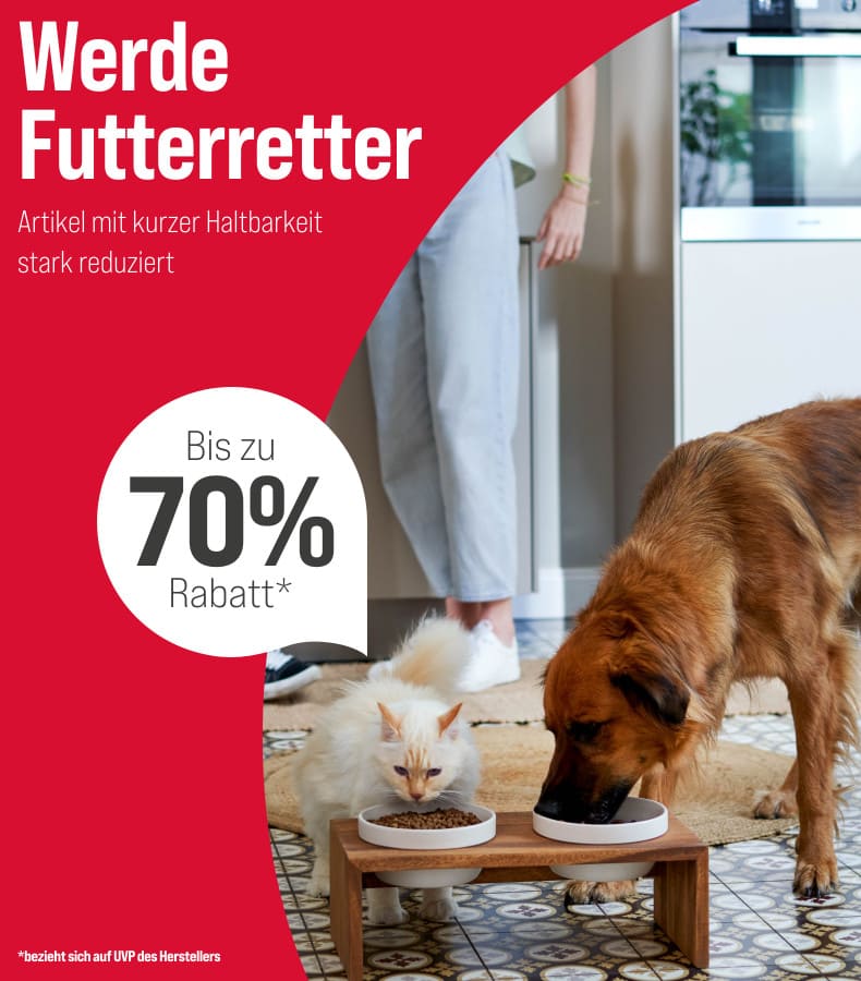 *Gültig vom 21.11.2025 bis 23.11.2025. Das Angebot gilt nur auf ausgewählte Produkte auf unserer Aktionsseite mit geringem Mindesthaltbarkeitsdatum (ab Kauf noch mindestens einen Monat haltbar). Solange der Vorrat reicht. Gilt nur im ZooRoyal Online-Shop und nicht in den ZooRoyal Fachmärkten.