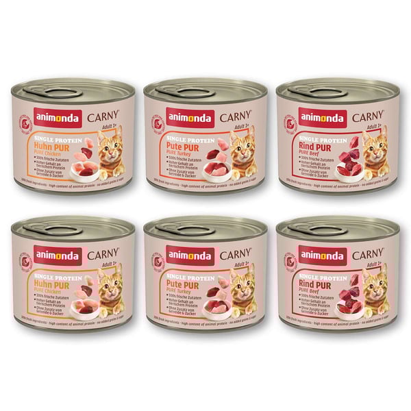Carny® Single Protein steht für ausgewogene Ernährung – mit nur einer tierischen Eiweißquelle – für ausgewachsene Katzen von 1 – 6 Jahren. Die frischen, fleischlichen Zutaten werden schnell und schonend verarbeitet um alle wichtigen Nährstoffe zu erhalten. Rapsöl dient als natürliche Quelle für Omega-3-Fettsäuren. Carny Single Protein wird in Deutschland hergestellt ohne Getreide, Soja, Zucker, Geschmacksverstärker, Farb- und Konservierungsstoffe. Es versorgt die ausgewachsene Katze mit allen lebenswichtigen Nährstoffen.