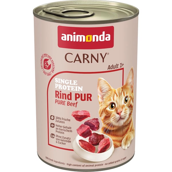 Carny® Single Protein steht für ausgewogene Ernährung – mit nur einer tierischen Eiweißquelle – für ausgewachsene Katzen von 1 – 6 Jahren. Die frischen, fleischlichen Zutaten werden schnell und schonend verarbeitet um alle wichtigen Nährstoffe zu erhalten. Rapsöl dient als natürliche Quelle für Omega-3-Fettsäuren. Carny Single Protein wird in Deutschland hergestellt ohne Getreide, Soja, Zucker, Geschmacksverstärker, Farb- und Konservierungsstoffe. Es versorgt die ausgewachsene Katze mit allen lebenswichtigen Nährstoffen.
