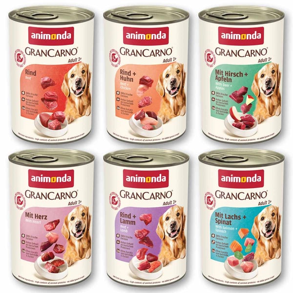 Hunde lassen sich in puncto Qualität nicht täuschen und sie lieben Fleisch. Deshalb wird GranCarno Nassfutter ausschließlich aus frischen fleischlichen Zutaten, wie Herz, Lunge, Fleisch und Leber zubereitet. Ergänzt mit lebenswichtigen Mineralstoffen und Vitaminen ist GranCarno die natürlich artgerechte Nahrung für deinen Hund. Die frischen, fleischlichen Zutaten werden schnell und schonend verarbeitet um alle wichtigen Nährstoffe zu erhalten. Natürlich, unverfälscht und mit dem typischen Fleischgeschmack, den Hunde so sehr schätzen. Bei GranCarno ist die Deklaration offen und ehrlich - wie das Produkt: alle verwendeten tierischen Zutaten werden im Detail genannt (z.B. Rindermuskelfleisch, Rinderherz). Da weiß man genau, was im Napf landet.