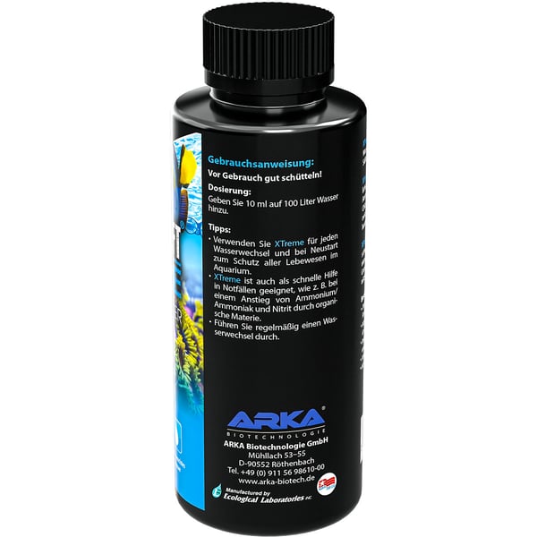 Verhindere effektiv den Anstieg von Ammonium, Ammoniak und Nitrit in deinem Aquarium. Der ARKA XTREME Wasseraufbereiter neutralisiert diese schädlichen Stoffe und sorgt für eine stabile Wasserqualität. Damit ist er ideal geeignet, um dein Aquarium bei einem Neustart oder nach einem Wasserwechsel zu unterstützen.
