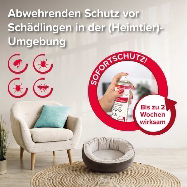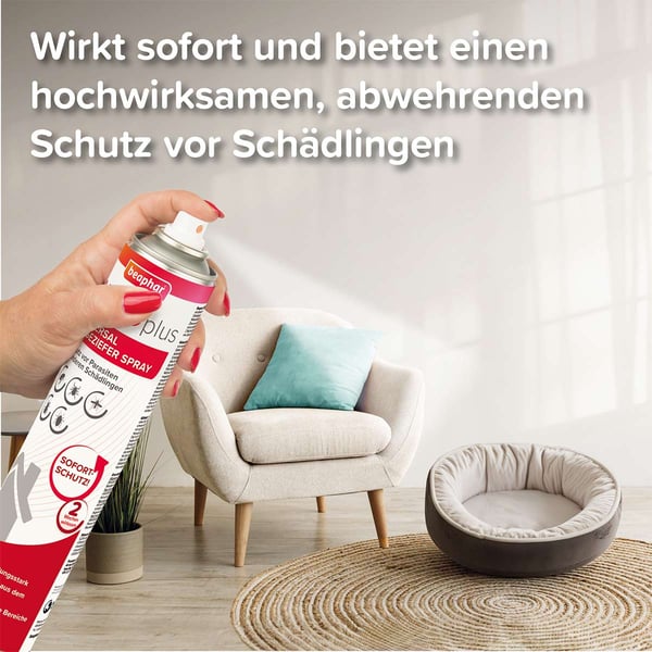 Mit dem beaphar VETOplus Universal Ungeziefer Spray erhältst du nicht nur eine sofortige Wirkung, sondern auch einen langanhaltenden Schutz. Die abwehrende Wirkung hält bis zu 2 Wochen an und sorgt dafür, dass behandelte Bereiche frei von Schädlingen bleiben. Ideal für eine kontinuierliche Pflege deiner Heimtier-Umgebung.