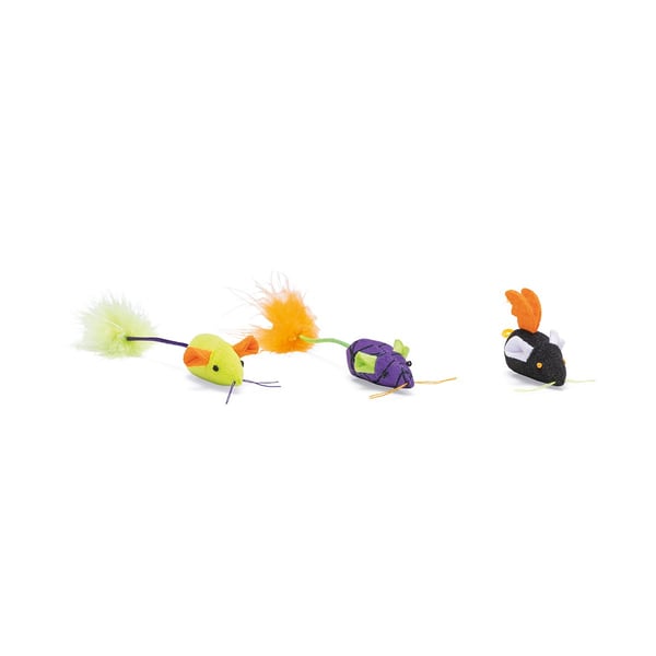 Die Beeztees Halloween Spielmäuse bieten deiner Katze ein aufregendes Spielerlebnis. Die Kombination aus weichem Plüsch und Katzenminze sorgt für stundenlangen Spielspaß. Die lebendigen Farben und witzigen Federn regen deinen Stubentiger zum Spielen und Jagen an.