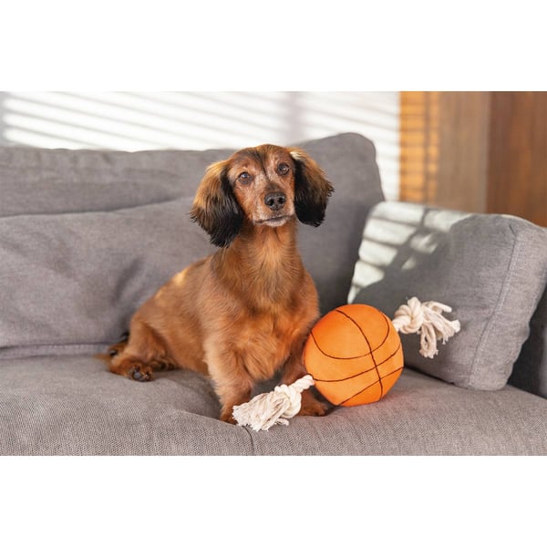 Der Beeztees Hundespielzeug Basketball mit Seil bietet dir und deinem Hund abwechslungsreiche Spielstunden. Der weiche Plüschball ist perfekt für Apportier- und Zerrspiele geeignet und sorgt für ein angenehmes Spielgefühl. Die robusten Baumwollseile erleichtern das Greifen und Schwingen des Balls, was das gemeinsame Spielen noch spaßiger macht.