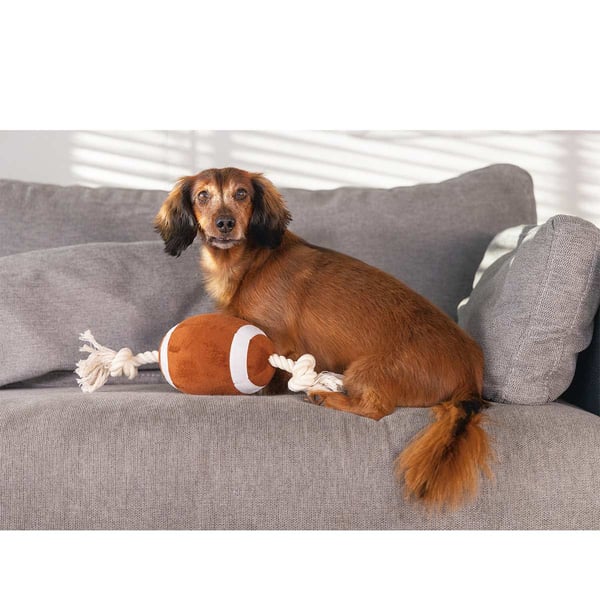Der Beeztees Rugbyball mit Seil bietet dir und deinem Hund endlose Möglichkeiten für spaßige und aktive Spielstunden. Dank der weichen Plüschoberfläche ist der Ball besonders sanft für das Maul deines Hundes, während die robusten Baumwollseile einen sicheren Griff garantieren. Diese Kombination macht das Spielzeug ideal für Apportier- und Zerrspiele.