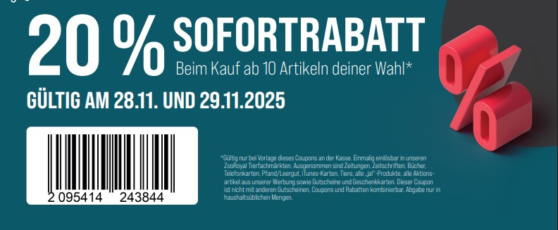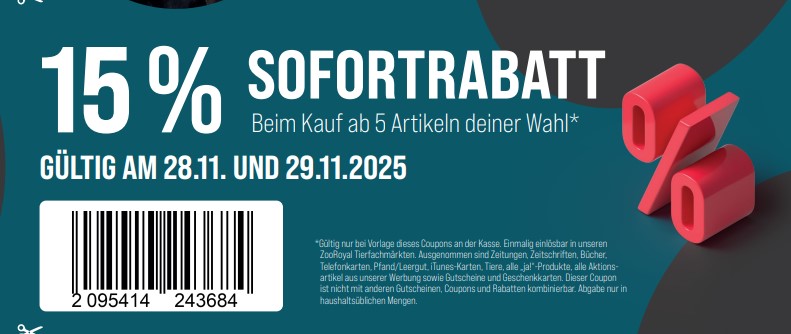 Gültig am 28.10.2025 und 29.11.2025. Alle Angaben zu unseren Kaufkonditionen findest du auf dem jeweiligen Rabattcoupon.