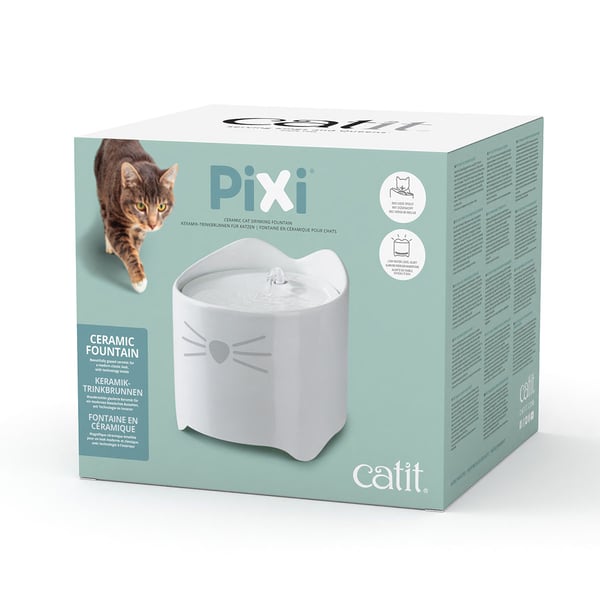 Der Catit Pixi Keramiktrinkbrunnen bietet deiner Katze stets frisches und sauberes Wasser. Der ergonomische Wasserspender ist so gestaltet, dass er die Schnurrhaare deiner Katze nicht behindert. Mit einem Fassungsvermögen von 1,7 Litern ist er ideal für den täglichen Gebrauch geeignet. Der Dreifachfilter sorgt dafür, dass das Wasser von Verunreinigungen befreit und enthärtet wird.