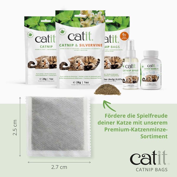 Die Catit Katzenminze Teebeutel enthalten ausschließlich reine, getrocknete Blätter und Blüten kanadischer Katzenminze. Diese Qualität sorgt dafür, dass die Katzenminze ihre anziehende Wirkung auf deine Katze voll entfalten kann. Die Beutel sind ideal, um das Spielverhalten deiner Katze zu fördern und ihr gleichzeitig eine beruhigende Wirkung zu bieten.
