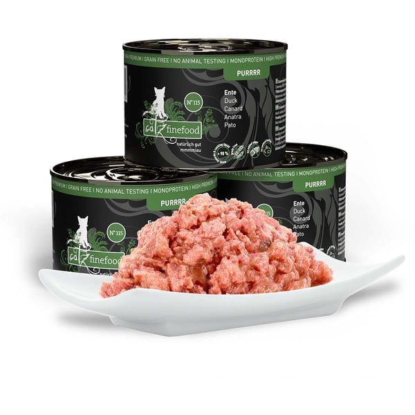 catz finefood möchte Katzen und ihre Menschen glücklich machen. Und was gibt es Schöneres als zufriedene Minitiger, die sich nach einer Mahlzeit genüsslich putzen und dann ein schnurrendes Schläfchen halten? Deshalb hat catz finefood PURRRR ein Alleinfuttermittel für Katzen entwickelt, in dem alles drin ist was dein Liebling braucht und super gut schmeckt. Bei der PURRRR-Linie hat catz finefood besonders an Sensibelchen und Tiere mit besonderen Ernährungsbedürfnissen gedacht: die Zutatenliste von catz finefood PURRRR ist kurz und ohne Schnickschnack.