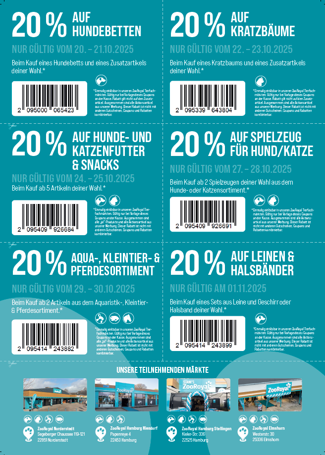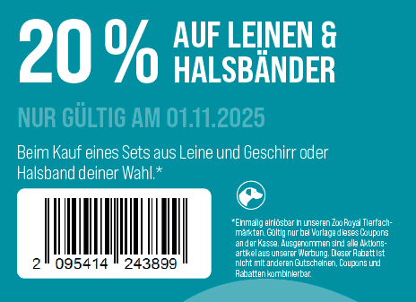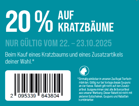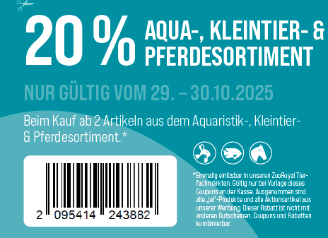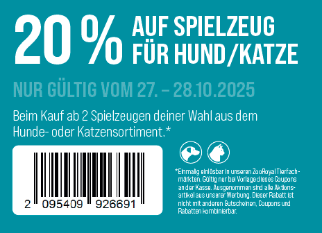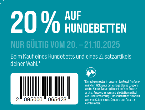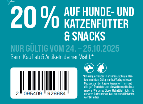 Profitiere von attraktiven Deal Days 20%-Rabattcoupons in unseren Tierfachmärkten.