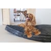 Der abnehmbare Außenbezug des Hundekissens ist maschinenwaschbar bei 30 Grad, was die Reinigung besonders einfach gestaltet. Der Innenbezug aus recyceltem Polyester sorgt für eine nachhaltige Nutzung. Dank des Reißverschlusses lässt sich der Bezug problemlos abnehmen und wieder aufziehen.