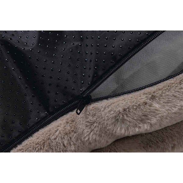 Der abnehmbare Außenbezug des Hundekissens ist maschinenwaschbar bei 30 Grad, was die Reinigung besonders einfach gestaltet. Der Innenbezug aus recyceltem Polyester sorgt für eine nachhaltige Nutzung. Dank des Reißverschlusses lässt sich der Bezug problemlos abnehmen und wieder aufziehen.