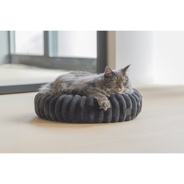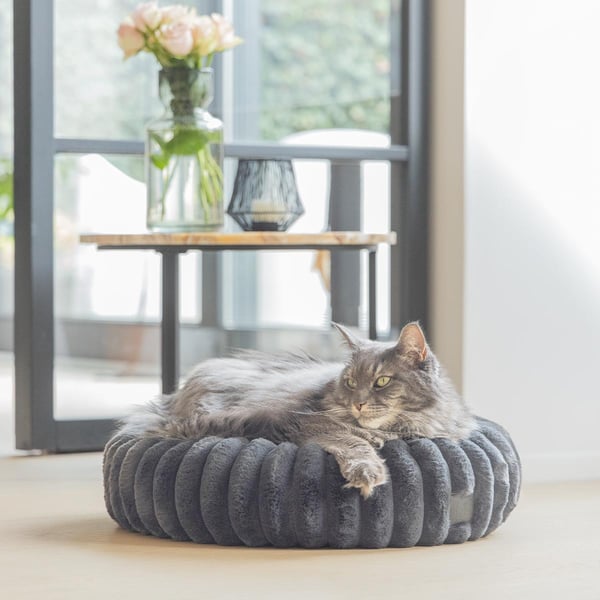 Das Designed by Lotte Katzenbett Reza bietet deiner Katze einen behaglichen Schlafplatz voller Geborgenheit. Der weiche Rippenstoff sorgt für ein angenehmes Liegegefühl, während die runde Form und die leicht erhöhten Ränder optimalen Schutz bieten. Katzen, die sich gerne zusammenrollen, finden hier ein perfektes Plätzchen, um sich sicher und geborgen zu fühlen.