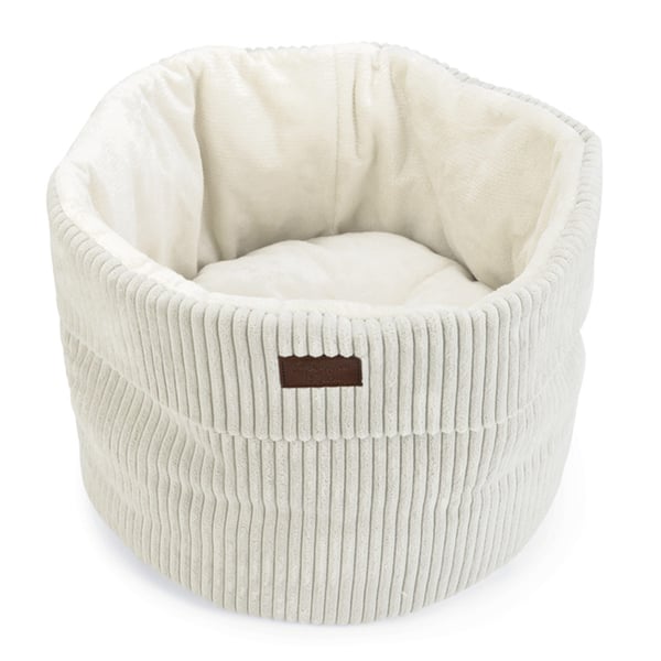 Diese extrem stylische Katzenhöhle von Designed by Lotte passt in jeden stilbewussten Haushalt. Mit seinem gerippten Stoff fällt das Katzenbett sofort ins Auge. Der Stoff ist herrlich weich und bietet zusätzlichen Komfort für deine Samtpfote. In diesem kuscheligen Korb kann dein Stubentiger dank der erhöhten Ränder und der runden Form perfekt einkuscheln und verstecken. Und wenn der Rand ein wenig zu hoch erscheint? Kein Problem, er lässt sich einfach umklappen.