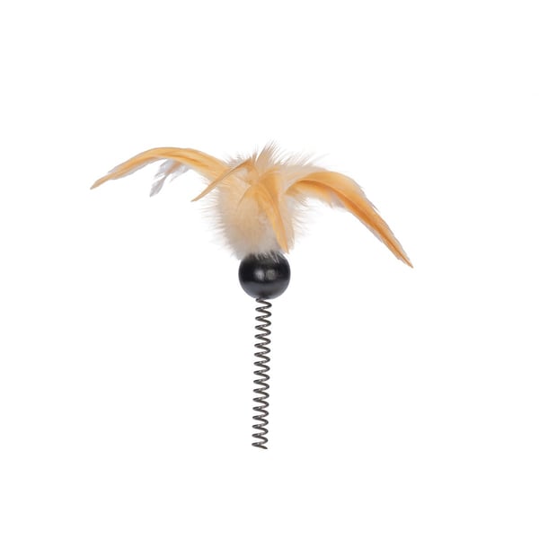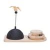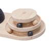 Aus Gummibaumholz (Rubberwood), Kratzball mit Juteseil, Spielturm inkl. Spielbälle, Sprungfeder mit Glöckchen, Kugel und Federn