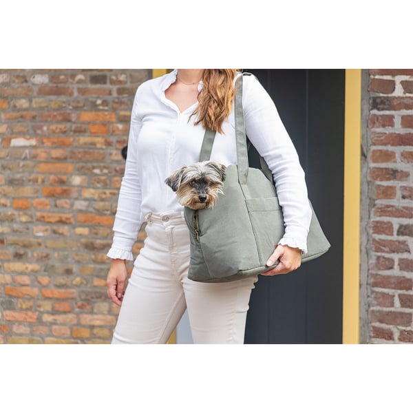 Transportiere deinen Vierbeiner mit Stil mit der "Tragetasche Bundu" von Designed by Lotte! Diese Tragetasche kombiniert Eleganz mit Komfort und ist sowohl für Sommer als auch Winter geeignet. Das gemütliche, herausnehmbare Plüschkissen sorgt für den Wohlfühlfaktor unterwegs. Mit einem Sicherheitshaken ausgestattet, gewährleistet diese Tragetasche nicht nur den stilvollen Transport deiner Fellnase, sondern auch seine Sicherheit. Sowohl in beige, als auch in grün, hat die Tasche einen zeitlosen Charme, während die maximale Tragfähigkeit von 7 kg sie perfekt für den Transport kleinerer Hunde macht.