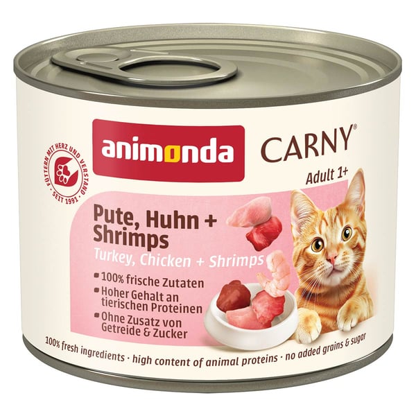 animonda Carny Adult Pute, Huhn und Shrimps wird zu 100% in Deutschland hergestellt, was für höchste Qualitätsstandards und sorgfältige Verarbeitung steht. Viele Tierbesitzer vertrauen seit Jahren auf die Produkte von Animonda, die auf den neuesten Forschungsergebnissen basieren. Mit diesem Nassfutter entscheidest du dich für eine hochwertige und vertrauenswürdige Ernährung für deine Katze.