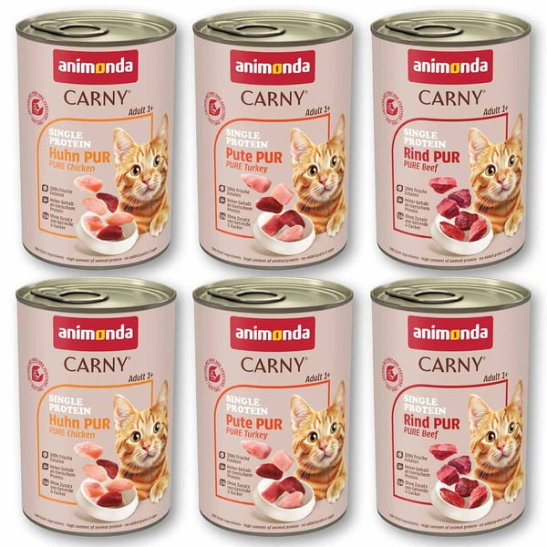 Carny® Single Protein steht für ausgewogene Ernährung – mit nur einer tierischen Eiweißquelle – für ausgewachsene Katzen von 1 – 6 Jahren. Die frischen, fleischlichen Zutaten werden schnell und schonend verarbeitet um alle wichtigen Nährstoffe zu erhalten. Rapsöl dient als natürliche Quelle für Omega-3-Fettsäuren. Carny Single Protein wird in Deutschland hergestellt ohne Getreide, Soja, Zucker, Geschmacksverstärker, Farb- und Konservierungsstoffe. Es versorgt die ausgewachsene Katze mit allen lebenswichtigen Nährstoffen.