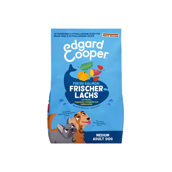 Edgard & Cooper Adult Frischer norwegischer Lachs bietet deinem Hund eine natürliche und schmackhafte Ernährung. Diese Rezeptur enthält frischen Lachs, der reich an hochwertigem Protein und Omega-3 ist. Auf Fischmehl wird bewusst verzichtet, um die Qualität der Zutaten zu bewahren. Die natürlichen Inhaltsstoffe wie Kürbis und Grünkohl bieten eine ausgewogene Ernährung.