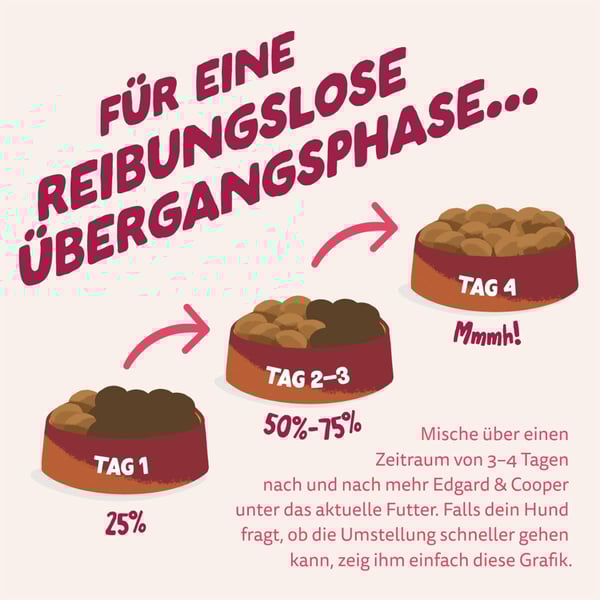 Tabelle separat bei den Abbildungen. Zusatz Info: Diese Tabelle ist nur ein Leitfaden, da jeder Hund einzigartig ist. Kontaktiere Edgard & Cooper für detailliertere Richtlinien. Dein Hund ist kein Kaktus, er liebt es, regelmäßig Wasser zu schlürfen. Achte also darauf, dass immer frisches Wasser zur Verfügung steht, besonders wenn du ihn fütterst.