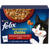 FELIX Sensations Gelees sind eine Auswahl unwiderstehlicher Mahlzeiten, hergestellt aus hochwertigen Inhaltsstoffen, die sensationell aussehen, sensationell riechen und Ihrer Katze natürlich auch sensationell schmecken. Jede Sorte besteht aus zarten Stückchen, angerichtet in aromatischem Gelee für eine tolle Geschmackskombination und ein leckeres Aroma. Es hilft Ihrer Katze voller Energie und für jeden Unfug bereitzuhalten! Unser Nassfutter für Katzen ist einfach unwiderstehlich!