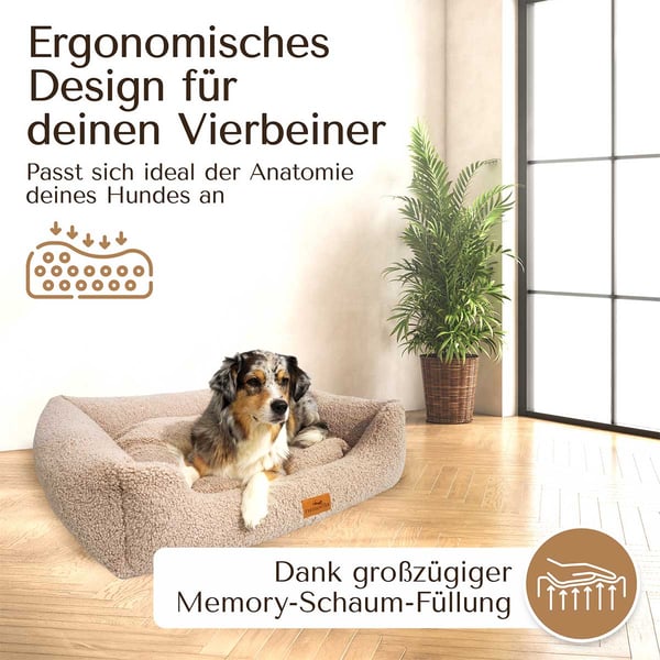Das Freudentier orthopädische Hundebett aus Teddy bietet deinem Hund einen Schlafplatz, der Komfort und Geborgenheit vereint. Der druckentlastende Memory Foam passt sich sanft dem Körper deines Hundes an und sorgt für eine optimale Liegeposition. Der weiche OEKO-TEX Teddystoff lädt zum Einkuscheln ein und bietet ein Gefühl von Geborgenheit, das dein Hund lieben wird.