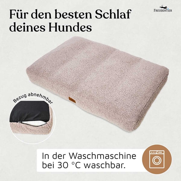 Das Hundekissen ist nicht nur komfortabel, sondern auch besonders pflegeleicht. Der Bezug lässt sich ganz einfach abziehen und bei 30 Grad in der Waschmaschine reinigen. So bleibt das Kissen stets hygienisch sauber und frisch, was für dein Zuhause und deinen Vierbeiner von Vorteil ist. Die formstabilen Eigenschaften des Kissens sorgen dafür, dass es auch nach vielen Waschgängen seine Form behält und deinem Hund dauerhaft einen bequemen Platz bietet.