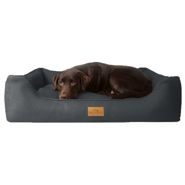 Das Freudentier orthopädische Hundebett Faultier bietet deinem Hund einen besonderen Ort der Entspannung. Mit viscoelastischen Memory-Flocken im Inneren sorgt es für einen gelenkschonenden Liegekomfort, der ideal für Hunde jeden Alters ist. Der samtweiche Stoff in edler Lederoptik verleiht dem Bett nicht nur ein luxuriöses Aussehen, sondern bietet auch eine angenehme Haptik für deinen Vierbeiner. So wird das Hundebett zu einem wahren Wohlfühlort.