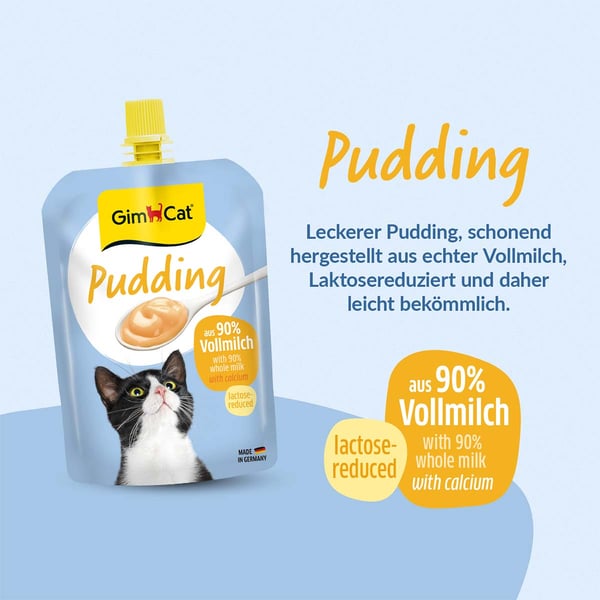 GimCat Pudding classic ist der ideale laktosereduzierte Snack für Katzen aller Lebensphasen. Dieser Snack bietet deiner Katze eine köstliche Belohnung, die speziell entwickelt wurde, um die Verträglichkeit zu verbessern und Verdauungsprobleme zu vermeiden. Durch die Reduktion von Laktose ist dieser Snack besonders geeignet für ausgewachsene Katzen, die Laktose von Natur aus schlechter verdauen können.