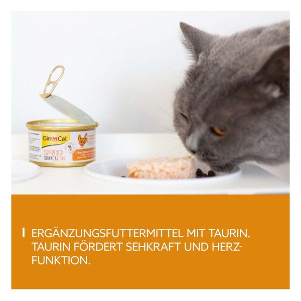 GimCat Superfood ShinyCat Duo Hühnchenfilet mit Karotten ist ein proteinreiches Nassfutter, das speziell auf die Bedürfnisse von erwachsenen Katzen abgestimmt ist. Mit hochwertigem Geflügel und Karotten bietet es eine ausgewogene Mahlzeit für deine Katze. Der hohe Fleischanteil sorgt für ausreichend Energie, besonders für aktive Katzen. Das Futter ist für Katzen aller Größen geeignet und wird deinem Liebling sicher schmecken.