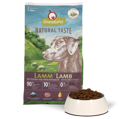 GranataPet Natural Taste Adult Lamm bietet deinem Hund eine hochwertige Ernährung mit einem hohen Fleischanteil, der für wertvolle Proteine sorgt. Die Hauptzutat Lamm verleiht dem Futter einen besonderen Geschmack, der deinem Hund gefallen wird. Da es sich um ein getreidefreies Produkt handelt, ist es besonders für Hunde geeignet, die auf Getreide empfindlich reagieren. So kannst du sicher sein, dass dein Hund das Beste erhält.
