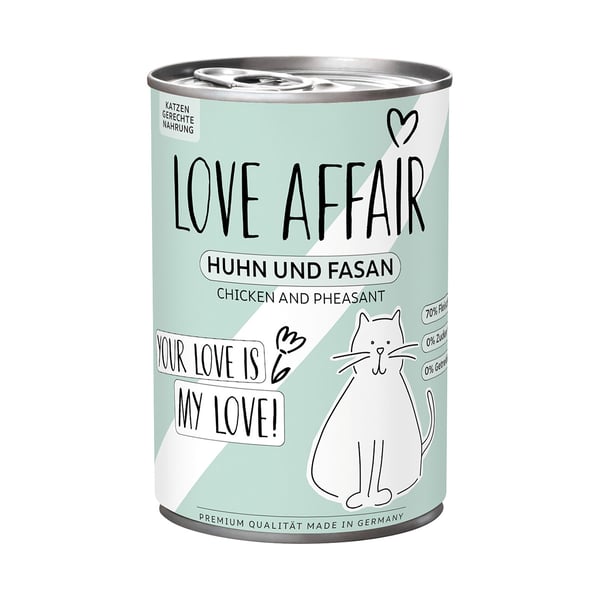 Hardys Love Affair Huhn & Fasan bietet deiner Katze eine exquisite Mahlzeit, die mit viel Liebe und Sorgfalt in Deutschland hergestellt wird. Die Pastete besteht zu 70% aus zartem Fleisch, was sie zu einem wahren Festmahl für Feinschmecker macht. Durch den schonenden Garprozess bleiben Vitamine und Nährstoffe weitestgehend erhalten, sodass deine Katze optimal versorgt wird. Die Rezeptur ist getreidefrei und ohne Zucker, was sie besonders bekömmlich macht.