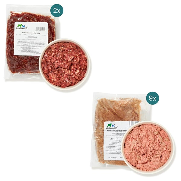 Mit Welpe Plus / Katzenschmaus und weiteren Fleischsorten wie Rindermix und Truthahnfleisch bietet das Starterset eine große Vielfalt. Die praktische Portionierung ermöglicht eine einfache Fütterung, die sich an die Bedürfnisse deines wachsenden Welpen anpassen lässt. Die beigelegte BARF Broschüre von Swanie Simon bietet zusätzliche Informationen für eine erfolgreiche Ernährung.