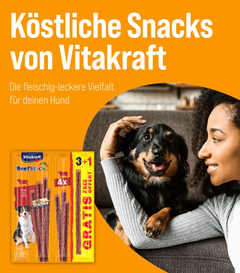 - 5 %VitakraftVitakraft Hundesnack Beef Stick Pansen50 Stück4,8 UVP 27,50 € (-5.13%)26,09 €65,23 € / kg