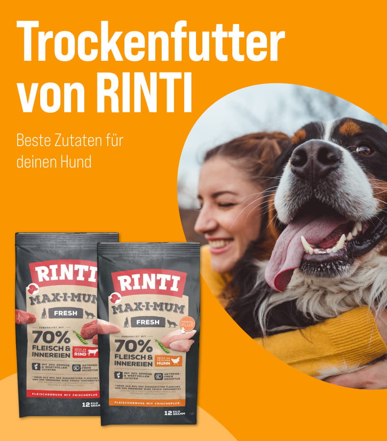- 18 %RintiRinti Max-i-Mum Rind2x12kg + 3 Varianten4,9 UVP 135,80 € (-17.53%)111,99 €4,67 € / kgSchließenSchließen