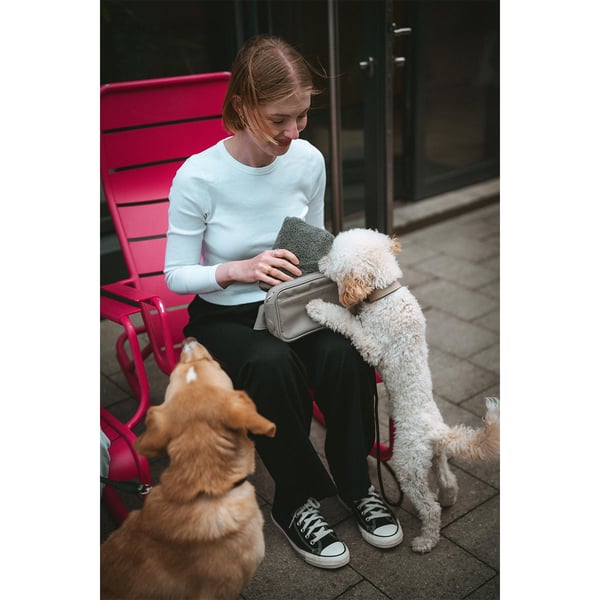 Mit zahlreichen Fächern ausgestattet, bietet die Tasche ausreichend Platz für Handy, Schlüssel, Leckerlis und mehr. Der diskret eingebaute Kotbeutelspender sorgt dafür, dass du stets vorbereitet bist. Die passende Decke, die sich in einem extra Staufach befindet, lässt sich bei Bedarf einfach ausbreiten und nach Gebrauch wieder platzsparend verstauen. Sie ist bei 30 °C waschbar und bleibt so immer frisch.