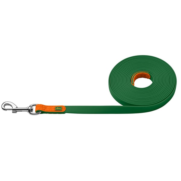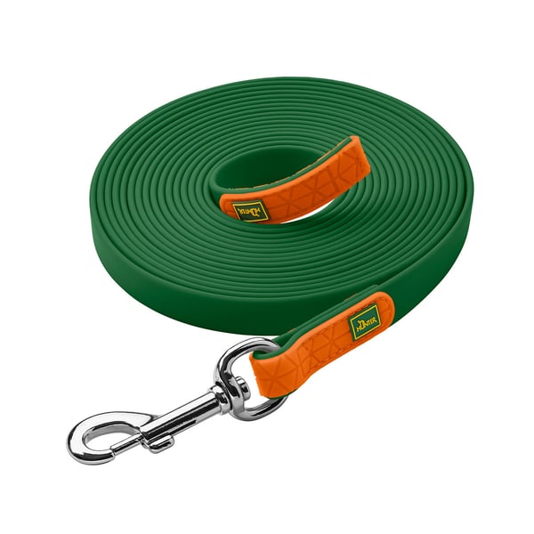 Die Schleppleine verzichtet bewusst auf eine Handschlaufe, um die Gefahr des Hängenbleibens im Unterholz oder an anderen Hindernissen zu minimieren. Dies macht die Leine besonders sicher und ideal für den Einsatz im Freien. Das innovative Material vereint die positiven Eigenschaften von Leder und Kunststoff, was sie extrem griffig und robust macht.