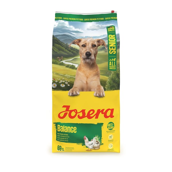 Auf die Bedürfnisse unserer Senior Hunde zugeschnitten: Josera Balance ist das besondere Futter für mehr Vitalität im Alter. Der reduzierte Fett- und Eiweißgehalt hilft, den Stoffwechsel des Hundes zu entlasten. Die gut verträgliche und ausgewogene Rezeptur ist glutenfrei und kann durch wertvolle Antioxidantien wie Vitamin E und C sowie Taurin der Zellalterung entgegenwirken. Da unser Balance außerdem ein phosphorarmes Hundefutter ist, kann es die Organe im Alter zusätzlich entlasten.