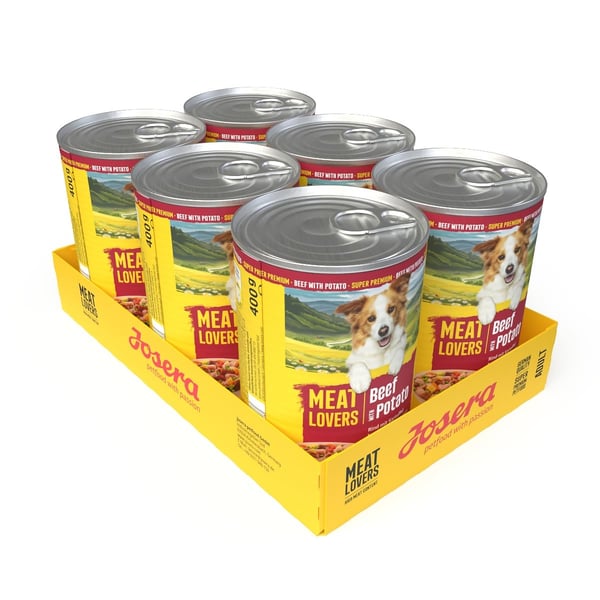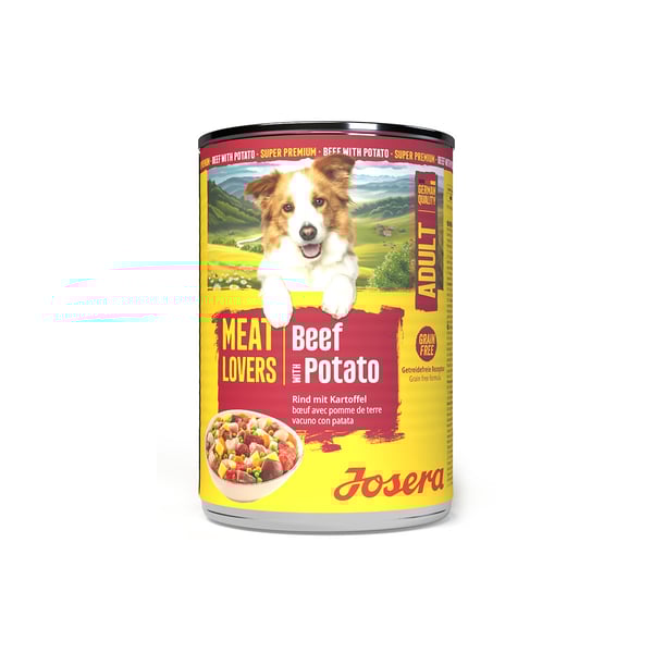 Es war nie so leicht, Hundeträume wahr werden zu lassen: Einfach die Dose öffnen und Deinem Vierbeiner das leckere Meat Lovers Menu Beef with Potato in den Napf füllen.