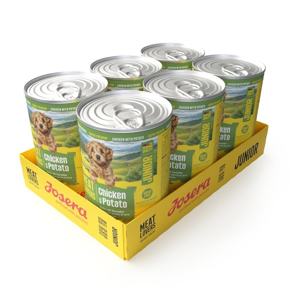Lachsöl als Lieferant von Omega 3-Fettsäuren DHA und EPA unterstützt außerdem die Entwicklung von Gehirn und Nervensystem heranwachsender Welpen. Also, lass es wahr werden: Öffne eine Dose Meat Lovers Junior Chicken & Potato und erfülle die fleischigsten Träume Deines Vierbeiners!