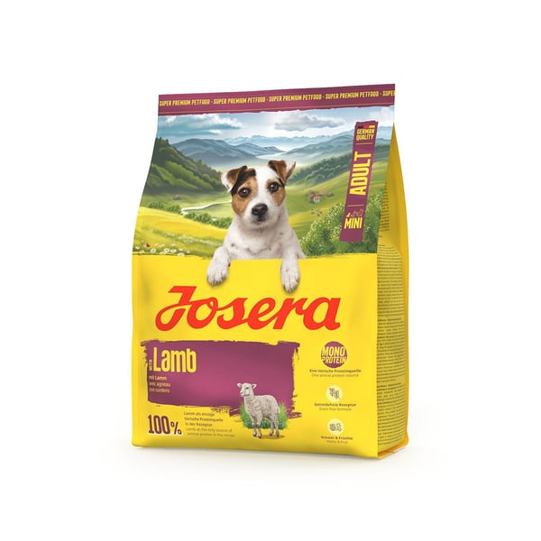 Für Feinschmecker auf kleinen Pfoten haben wir unser Josera Mini Lamb entwickelt. Die getreidefreie Rezeptur mit 100 % Lamm als einzige tierische Proteinquelle ist besonders gut verträglich und eignet sich auch für empfindliche Hunde. Dabei ist sie alles andere als langweilig: Ausgewählte Kräuter und Früchte sorgen für extra Abwechslung im Napf.