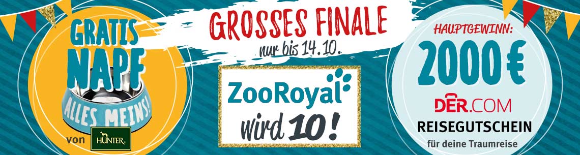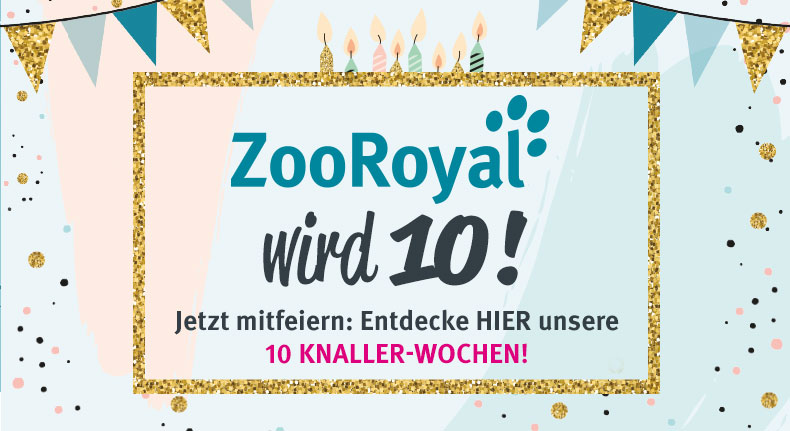ZooRoyal hat Geburtstag - und du feierst mit! Anlässlich unseres Jubiläums erwarten dich 10 Wochen lang (vom 6.8. bis zum 14.10.) Knaller-Angebote, 10 tierisch heiße Gewinne im Wert von insgesamt 10.000 Euro und zahlreiche Jubel-Specials. Hier haben wir alle Highlights für dich zusammengefasst.