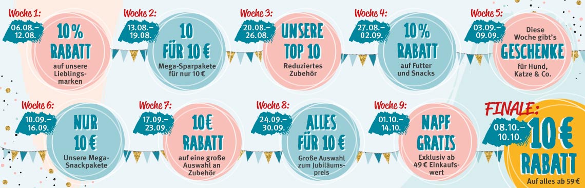 Macht euren vierbeinigen Kuschelfreunden mit nur 10 Euro eine Freude und schnappt euch unsere Jubiläums-Knaller!