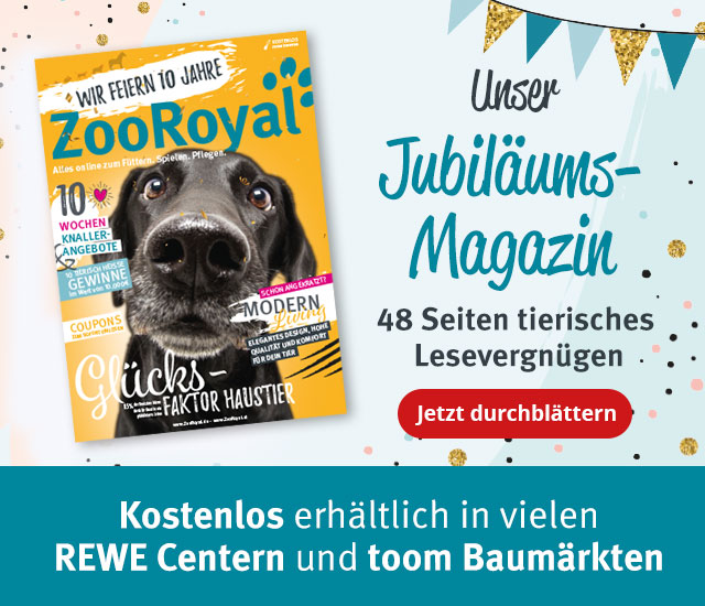 Anlässlich des Jubiläums erscheint ZooRoyal ab sofort im neuen Look: Petrol bestimmt von nun an unser Erscheinungsbild! Die Trendfarbe wirkt nicht nur intensiv und edel, sondern auch beruhigend. Und das Beste: Sie steht einfach jedem Vierbeiner - probiere es aus!