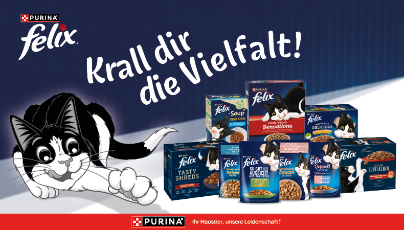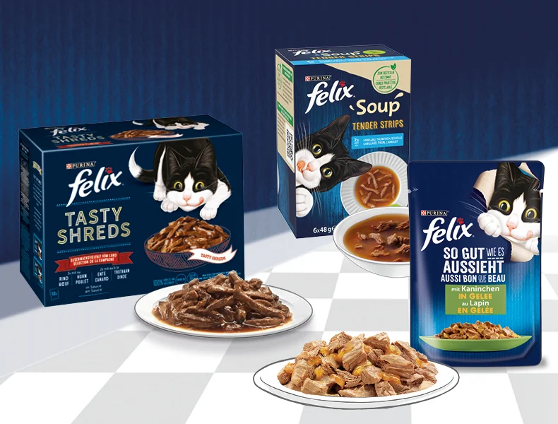 Knusprige Kroketten, saftige Häppchen oder cremige Suppen – FELIX bietet eine Vielfalt an köstlichen Trocken- oder Nassmahlzeiten in vielen unwiderstehlichen Geschmacksrichtungen. Sie sehen gut aus, riechen gut und schmecken außerordentlich gut. Hergestellt aus hochwertigen Inhaltsstoffen und reich an essenziellen Fettsäuren und Vitaminen. Aber ohne Farbstoffe und Zusatz von künstlichen Aroma- & Farbstoffen. Dein kleiner Racker wird begeistert sein!